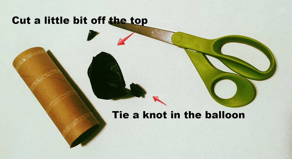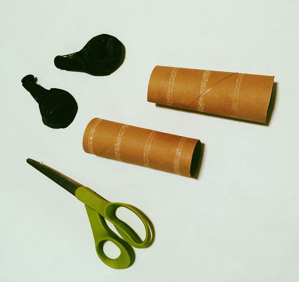 The first step is to gather your cardboard rolls, balloons and scissors. You can make your own party popper with just these three items.